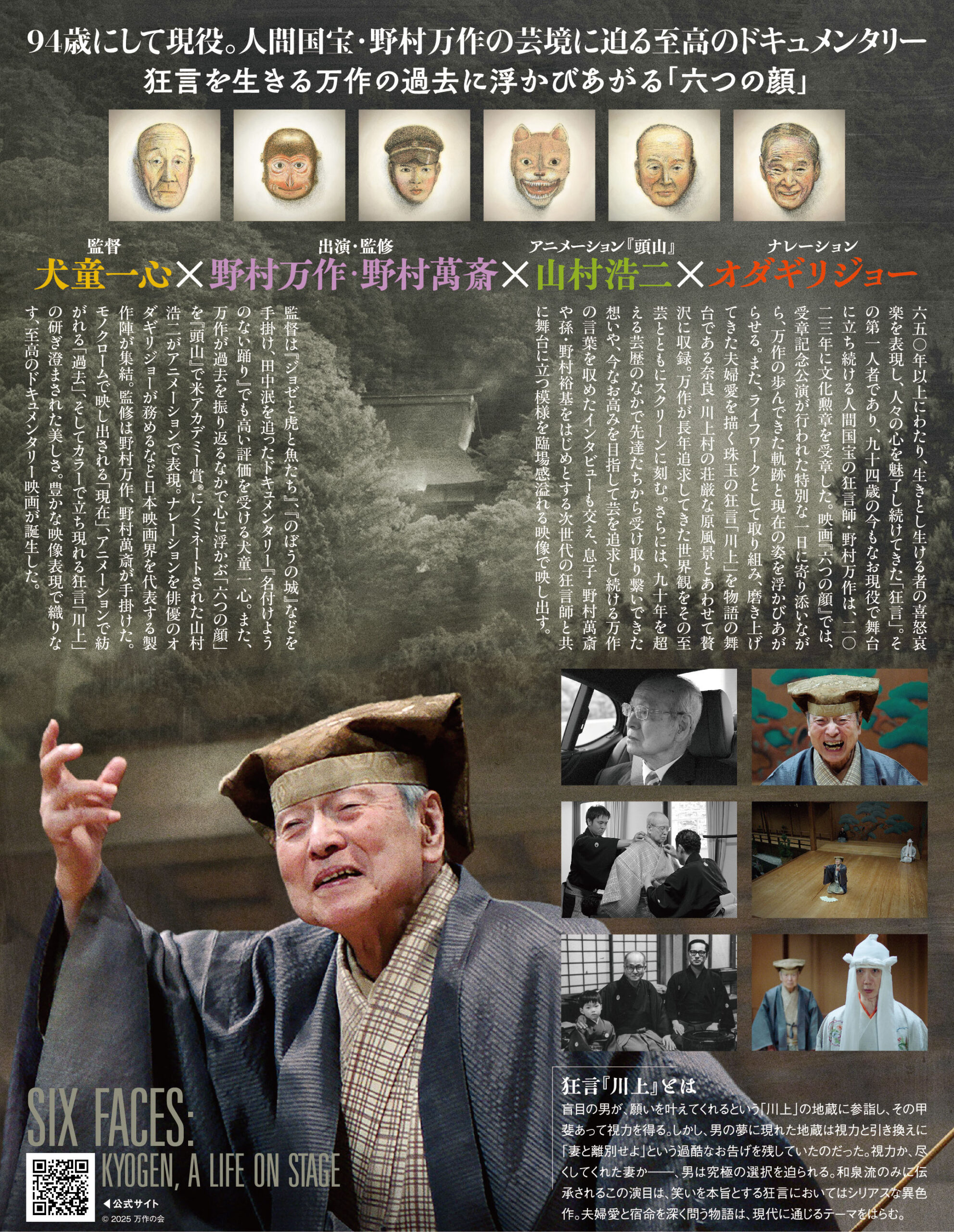 ある特別な一日の公演に寄り添い、万作が磨き上げ てきた珠玉の狂言「川上」と人生の軌跡に迫る──。