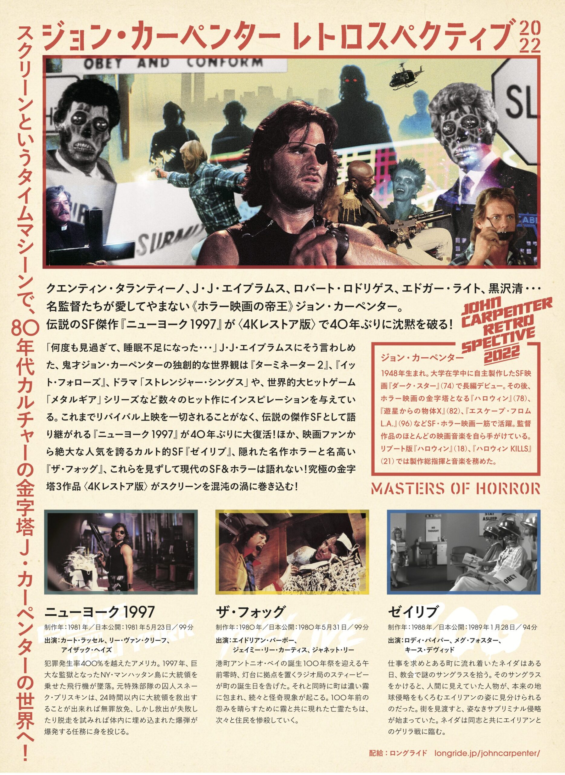 ジョン・カーペンター80年代の3大傑作がこの11月末に国内上映期限切れとなる。
