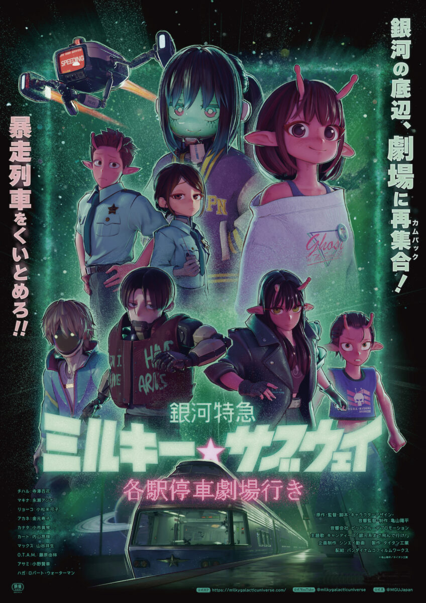 突如暴走する銀河特急!乗っているのは銀河道路交通法違反で補導されて罰として車両清掃を課された6人のくせツヨな少年少女!果たして暴走は止められるのか?レトロフューチャーな世界観やコミカルで丁々発止な会話の妙がやみつきになるPOPなCGアニメーション。亀山陽平監督が2年をかけてほぼひとりで作り上げて話題を集めた、インディペンデントからメジャーへ一気に駆け上がったこれぞシンデレラエクスプレス!