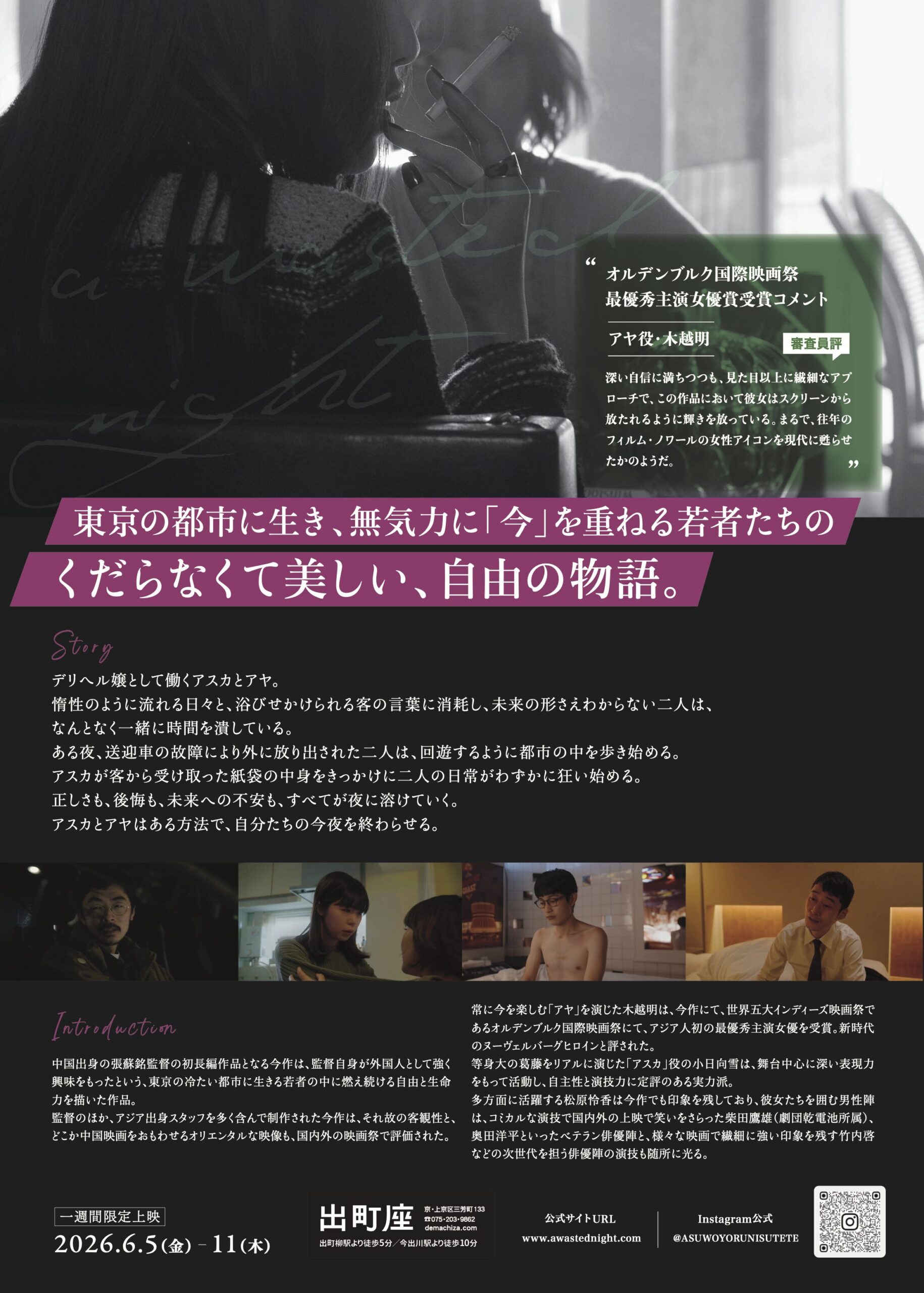 明日を夜に捨てて 上映スケジュール 2026/6/5 金 〜 6/11 木 料金 通常料金設定 公式サイト 『明日を夜に捨てて』 2024/Japan/60min 出演:小日向雪、木越明 柴田鷹雄、松原怜香、大島雄貴、竹内啓 監督:張蘇銘 脚本:高山暖、夏井紀章 Tweet 前の作品へ 次の作品へ 上映予定一覧へ