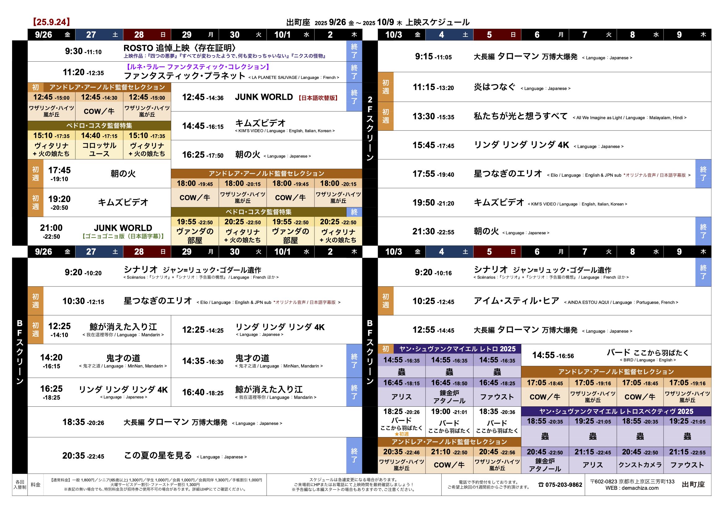 9/26 金 〜 10/9 木 の映画スケジュール【25.9.24】