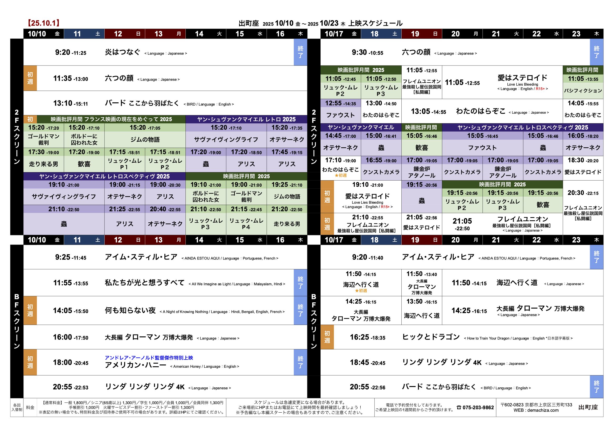 10/10 金 〜 10/23 木 の映画スケジュール【25.10.01】