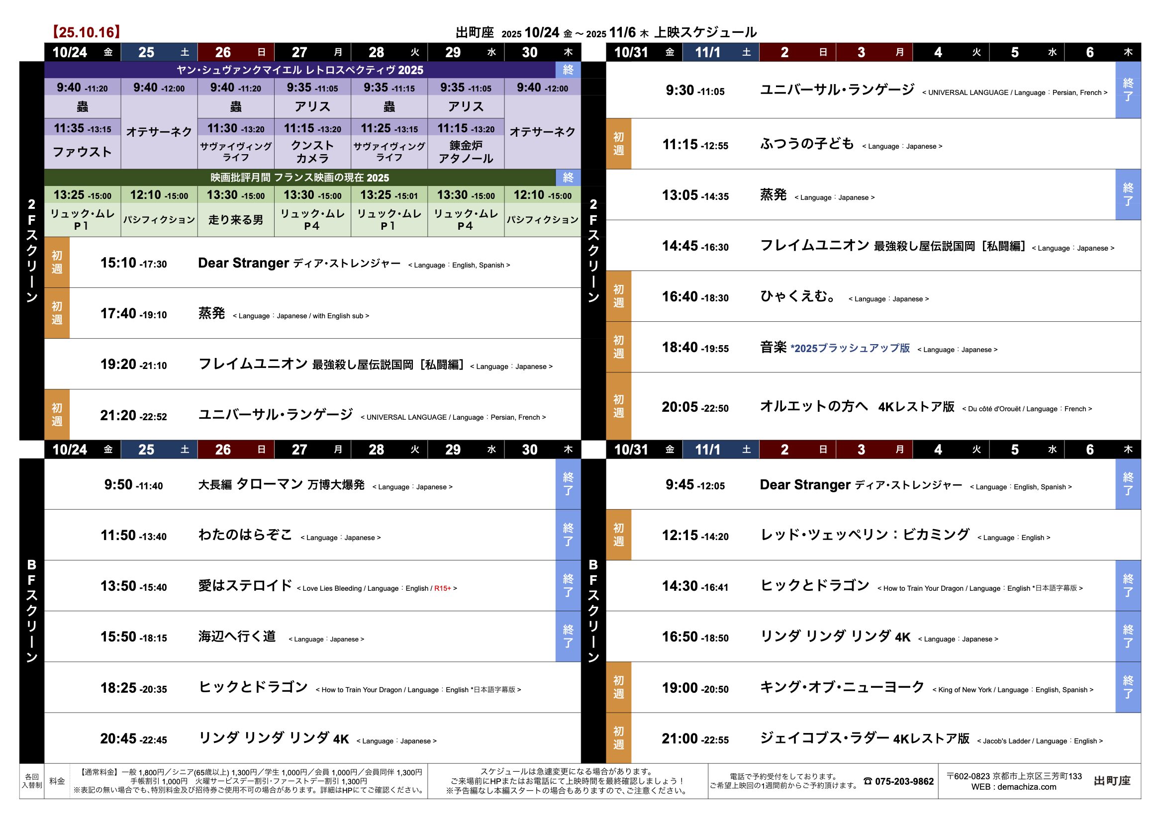 10/24 金 〜 11/6 木 の映画スケジュール【25.10.16】