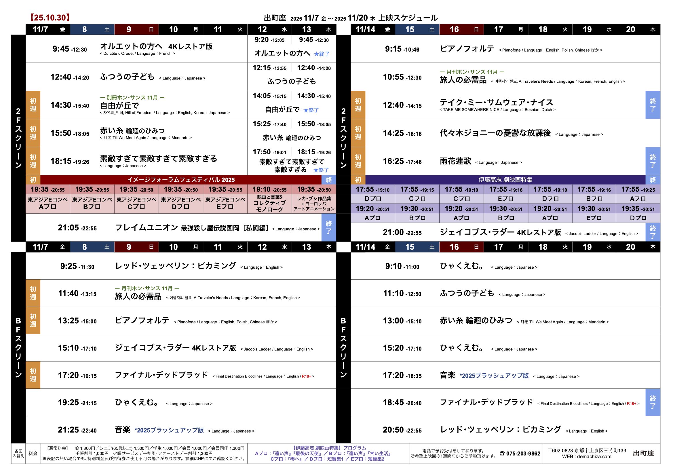 11/7 金 〜 11/20 木 の映画スケジュール【25.10.30】