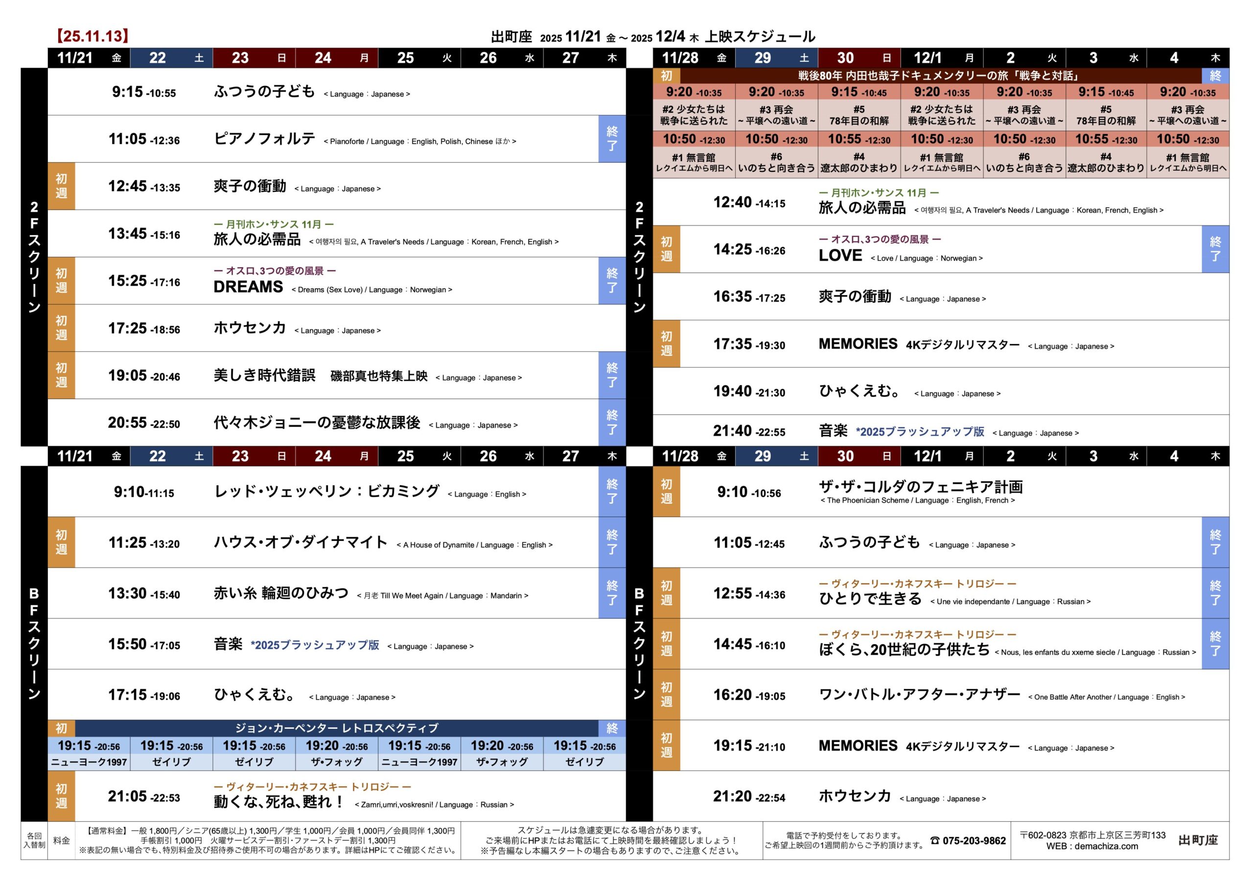 11/21 金 〜 12/4 木 の映画スケジュール【25.11.13】