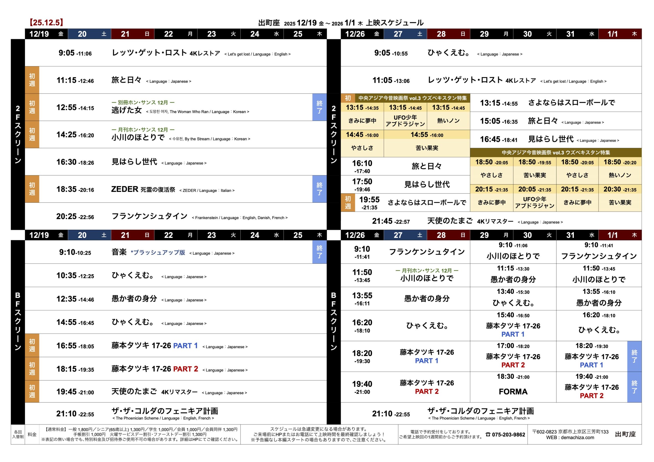 12/19 金 〜 1/1 木 の映画スケジュール【25.12.5】