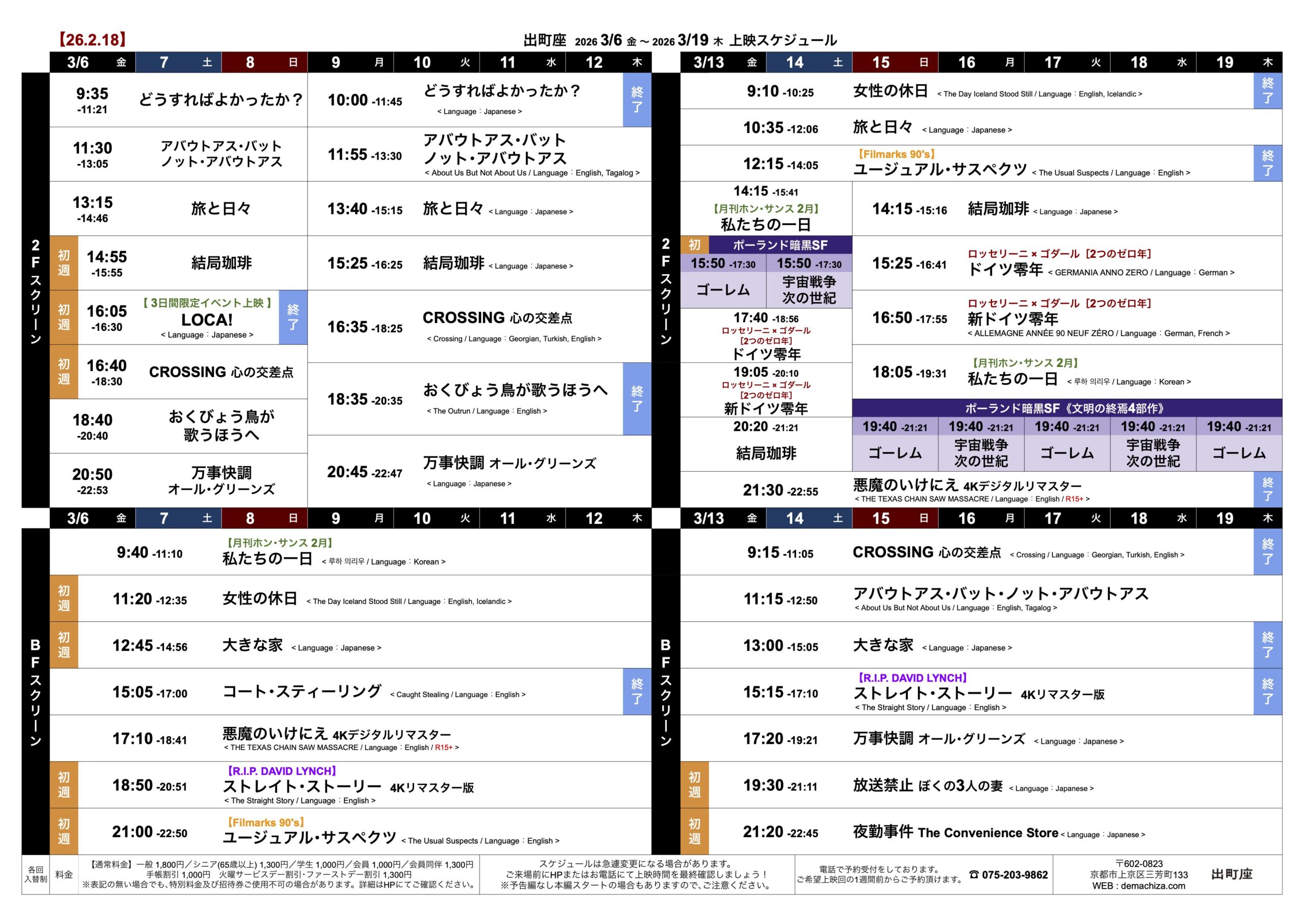 3/6 金 〜 3/19 木 の映画スケジュール【26.2.18】